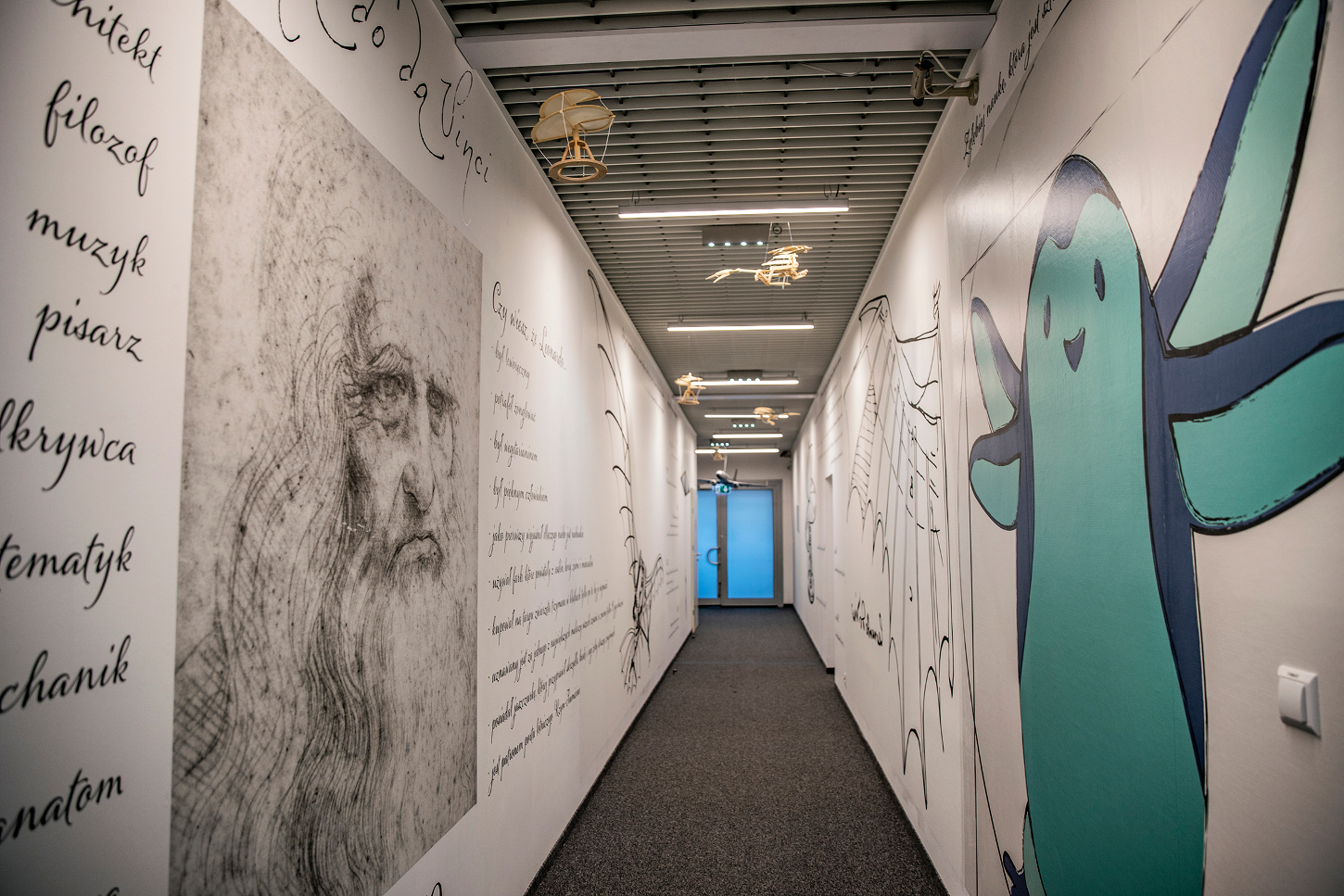 Korytarz Leonarda da Vinci jest on podróżą w czasie do okresu, w którym ten genialny artysta, określany często jako najwszechstronniej utalentowany człowiek w historii, tworzył swoje dzieła. Jednym z interesujących go obszarów była dziedzina lotnictwa. Da Vinci opracował m.in. wyprzedzającą jego czasy koncepcję śmigłowca, którego model będzie można zobaczyć w hallu CEL.